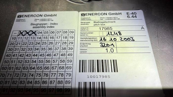 Enercon E-40 6.44 600 kW E-44 pitch box blade control cabinet SAP 17985