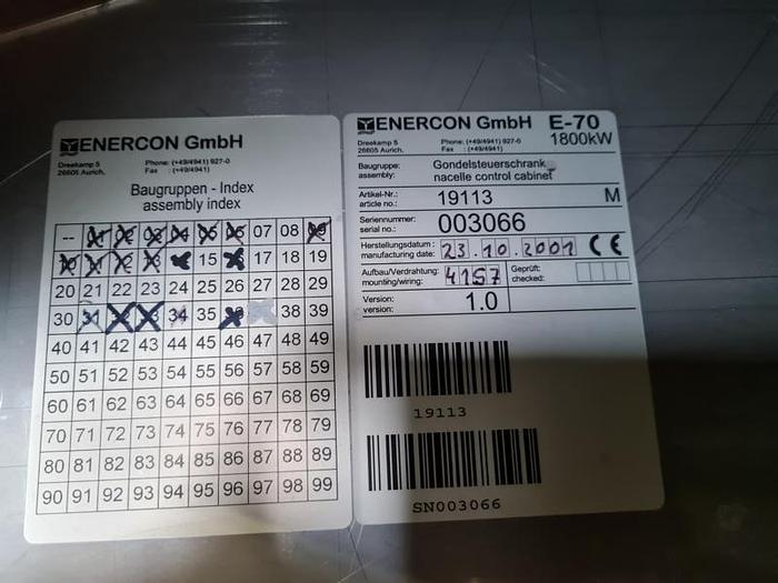 Enercon E-66 / E-70 nacelle control cabinet, item no. 19113